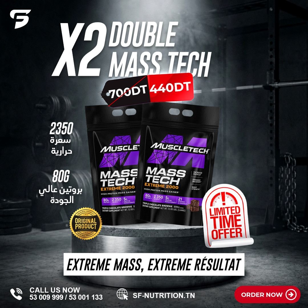 2X Double Mass Tech Extreme 2000 est un pack explosif pour prendre du poids, booster les performances et maximiser la récupération.