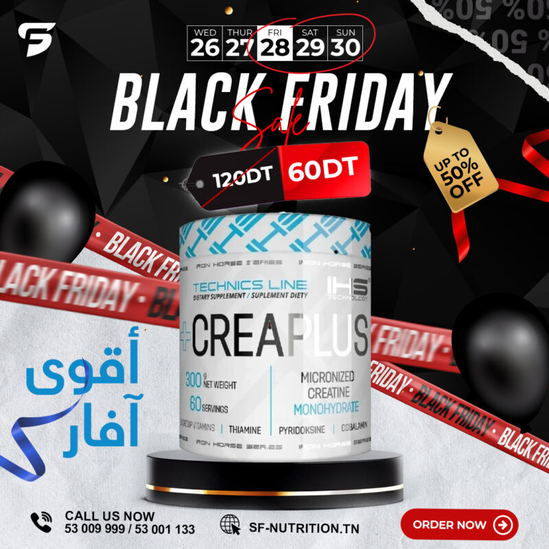 « Créatine micronisée de haute qualité, idéale pour tous les niveaux. Se mélange facilement, sans goût, et reste l’un des compléments les plus reconnus pour améliorer la force, l’explosivité et la récupération. »