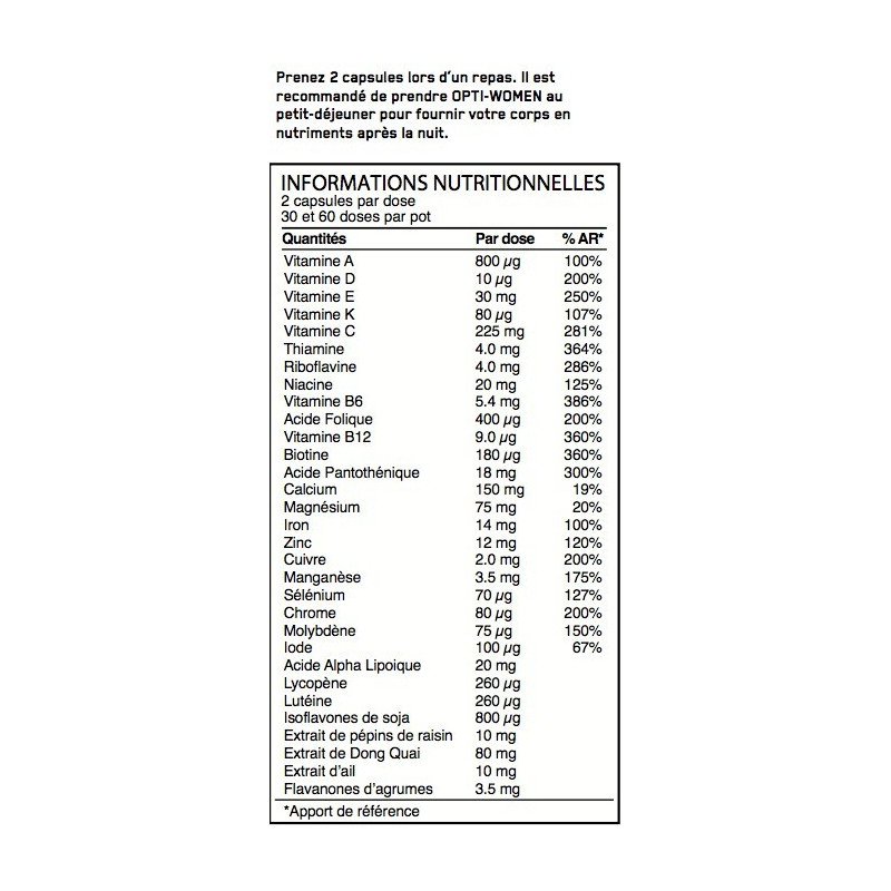 Ingrédients de Opti-Women